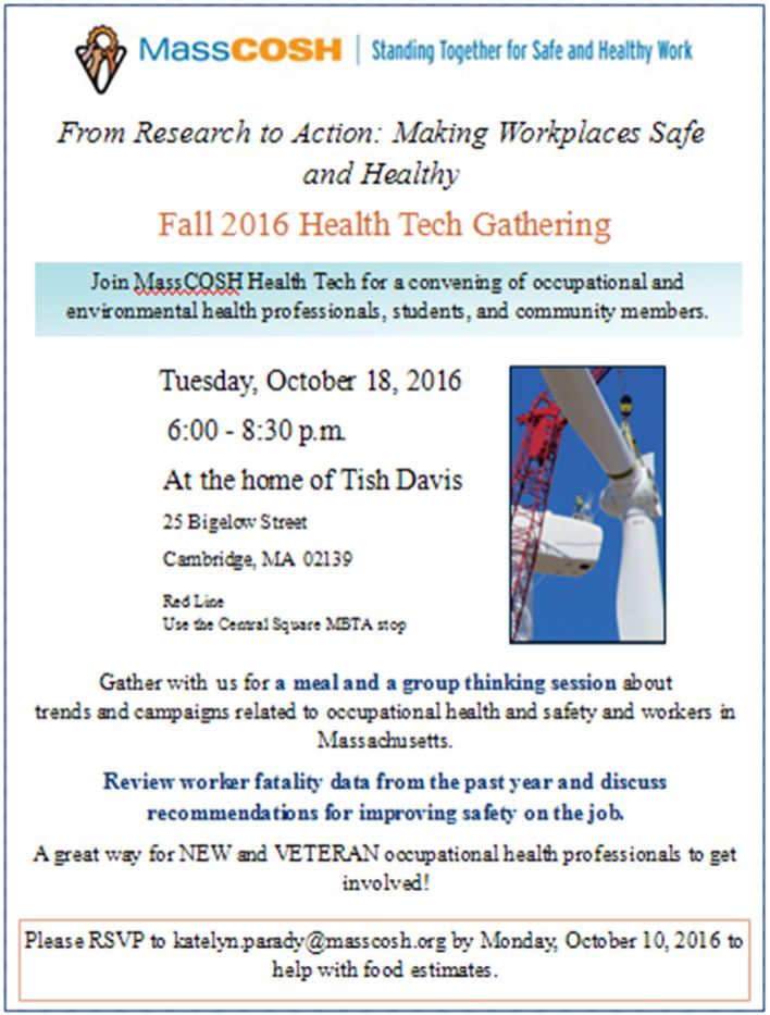 December 1 | 26 West St, 2nd floor, Boston, MA 02111-1204, After 17 incredibly fruitful years, Marcy Goldstein-Gelb is resigning from MassCOSH to head the National Council for Occupational Safety and Health. For nearly half of our history, Marcy has been with us to grow and lead MassCOSH into the winning…