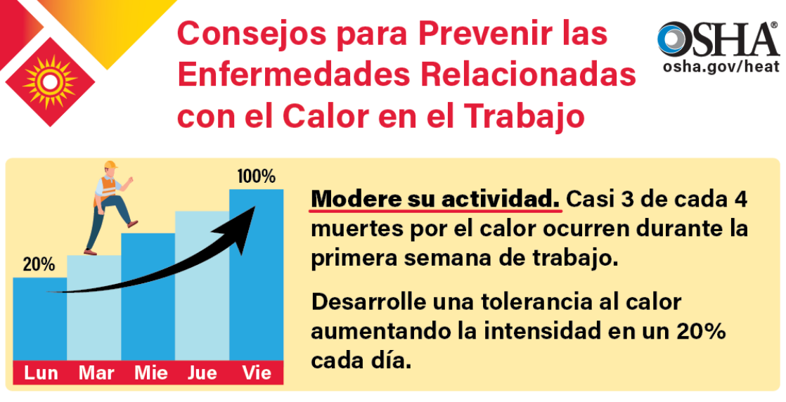 - Instruct compliance safety and health officers, during their travels to job sites, to conduct an intervention (providing the agency's heat poster/wallet card, discuss the importance of easy access to cool water, cooling areas and acclimatization) or opening an inspection when they observe employees performing strenuous work in hot conditions.