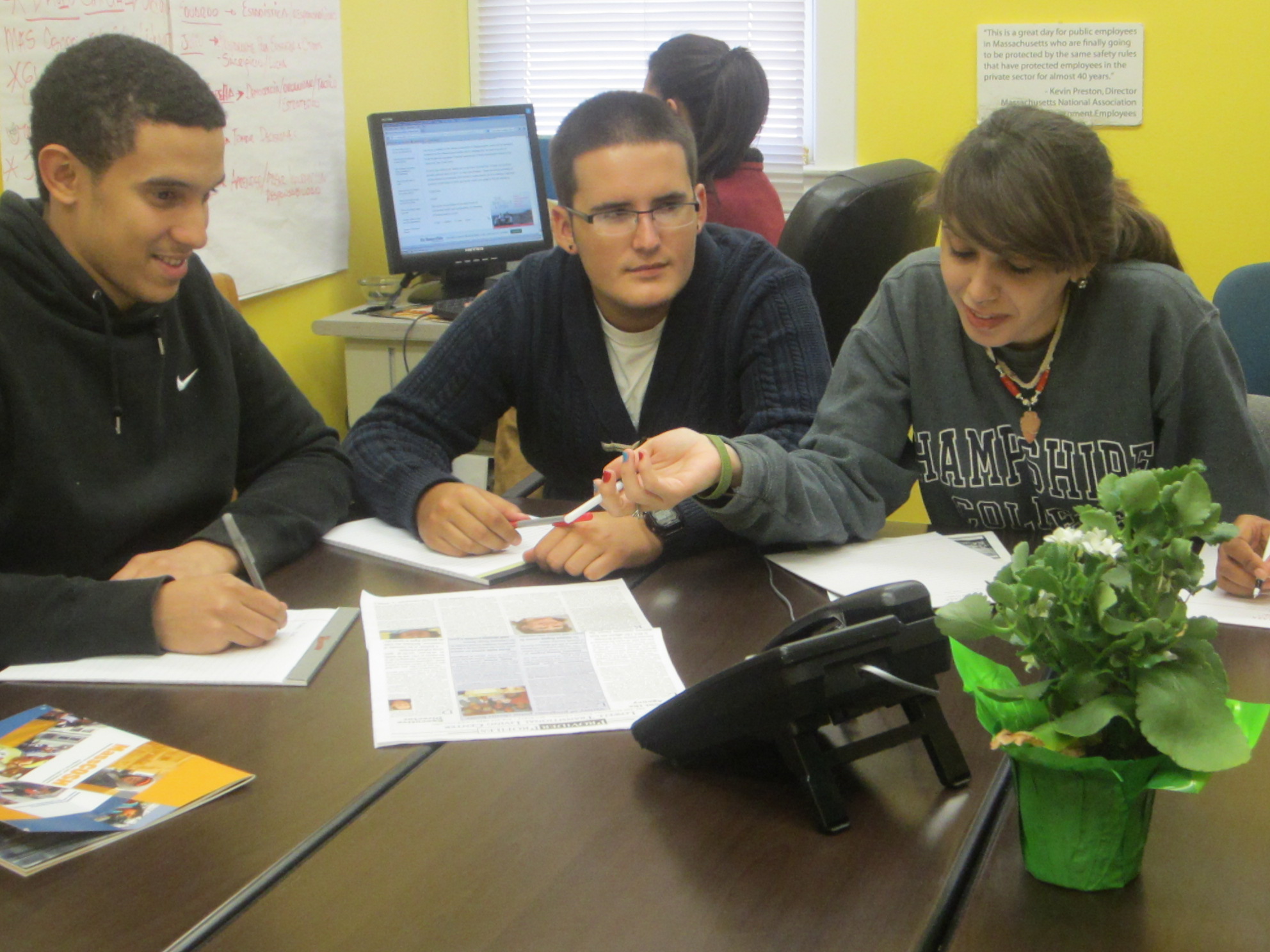 When MassCOSH’s Teens Lead @ Work (TL@W) was contacted by a former Enterteenment writer, the peer leaders knew they had to take action. Through national conference calls, TL@W peer leaders helped the young workers – ranging in age from 17 to 25, and residing all over the country from Idaho to Virginia to Massachusetts – plan a strategy to bring the employer to the table and provide just compensation. They coordinated wage complaints to the Attorney General’s (AG) office, and had AG staff join on the call to keep the young workers updated. They sent the employer a demand letter, and obtained prominent media coverage in the Dorchester News, the Boston Globe and Teens in Print.